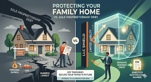 Choosing the right business structure isn’t just a technical decision—it’s a personal one that directly impacts your financial safety and your family’s future. A sole proprietorship may be easy to start, but it leaves your home, savings, and assets vulnerable to business risks. By contrast, forming an LLC creates a legal shield that separates your personal life from your business obligations.
